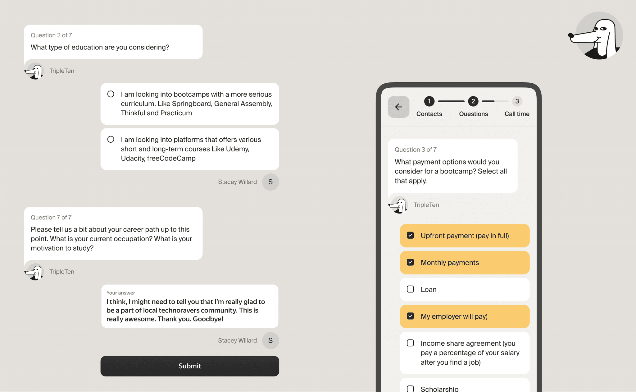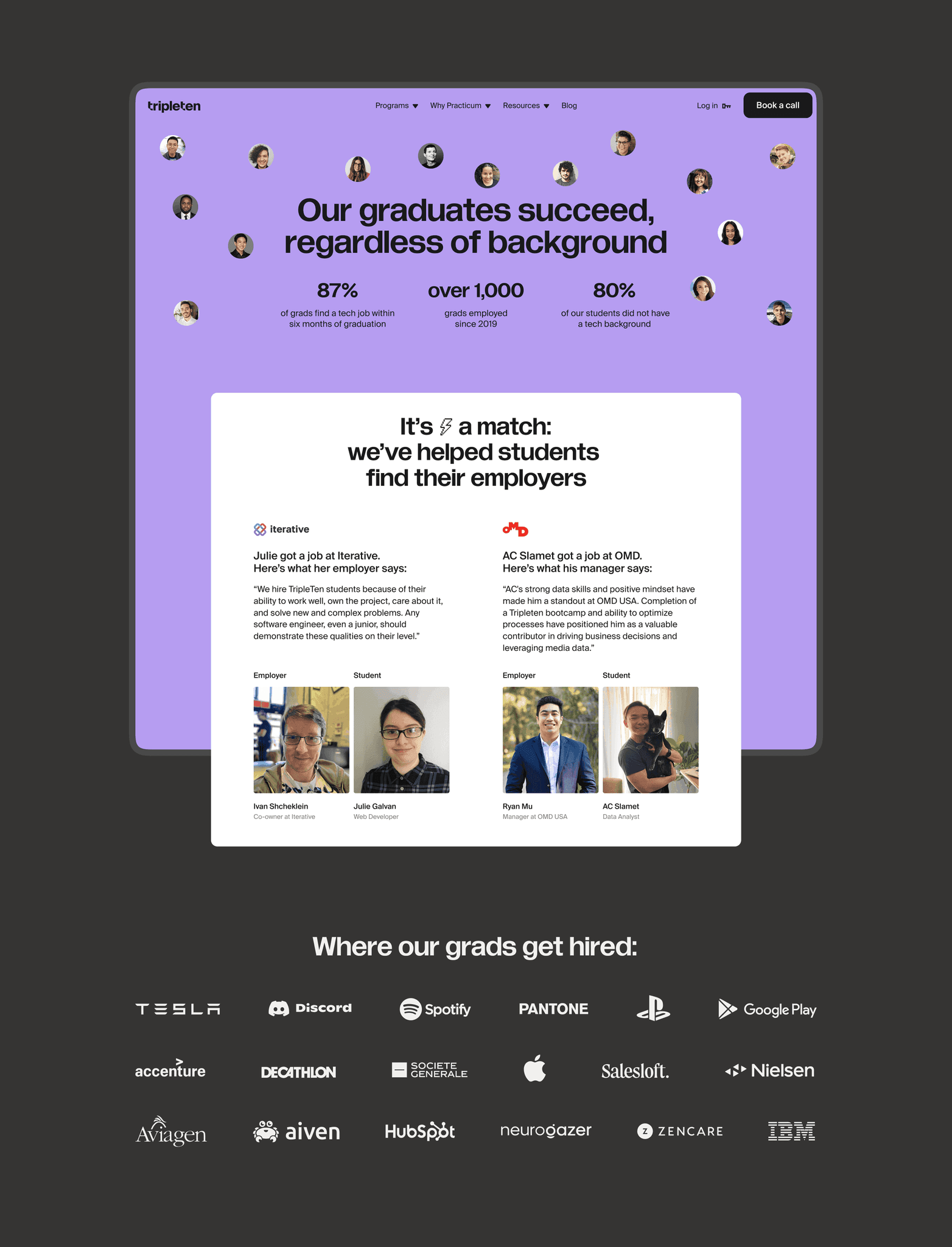 The TripleTen Learning Platform is one of company's unique selling points, as very few bootcamps offer something similar.