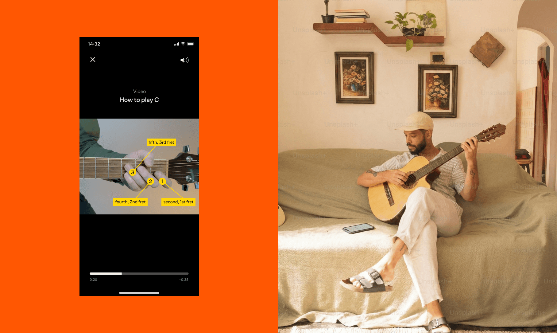 This is an onboarding mode for novice guitar players, who installed the app for the first time. We discovered that a churn rate for that cohort of users is higher in comparison to more experienced ones. The main hypotheses was that beginners are getting overwhelmed by all the app could give, so some guidance should take place.