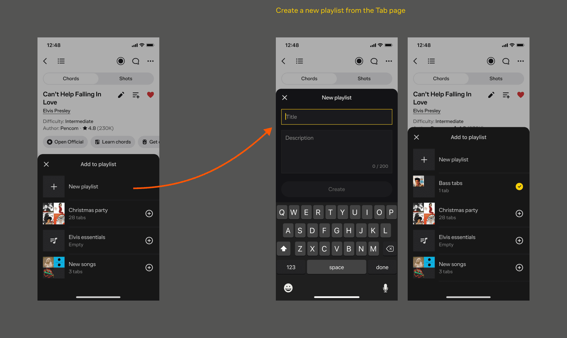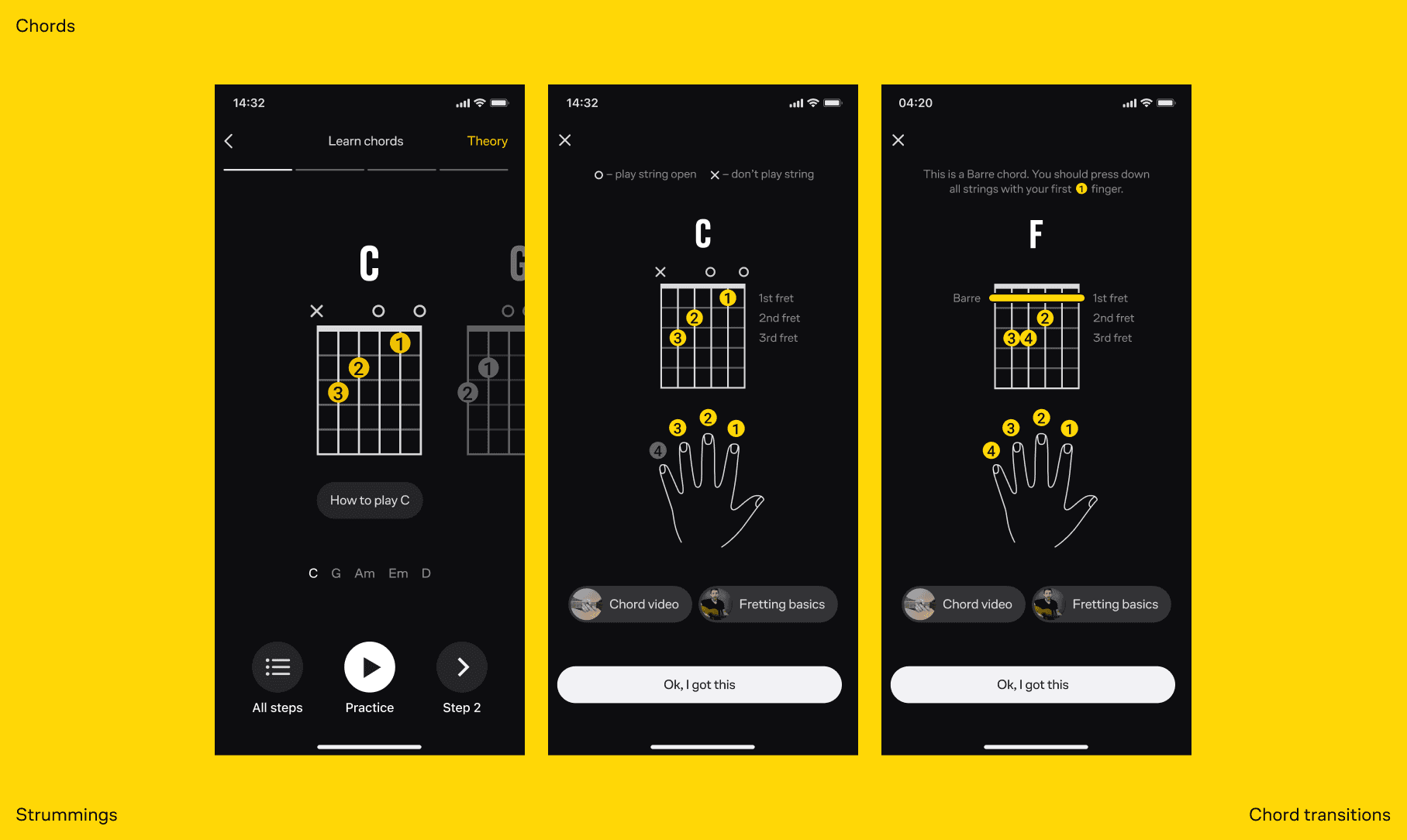 The solution was to create a special onboarding process. On the first entry user choose a song from a guided list of popular but simple songs. That song is laid in a foundation a learning path: step-by-step user will be learning how to play this song starting with chords, than transitions between them and rhytm.