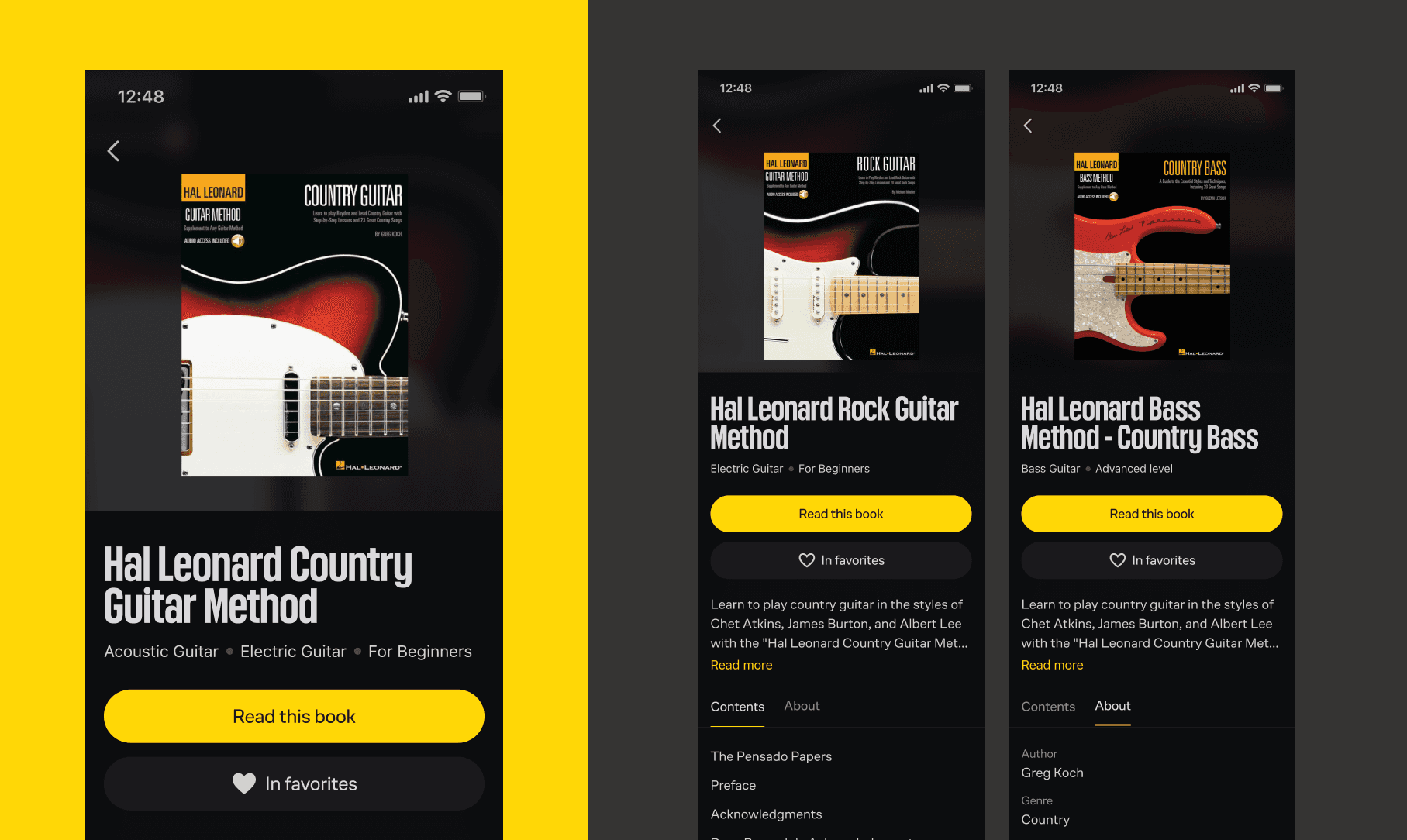 Ultimate Guitar has a collection of nearly 3000 books about music and self-teaching guides. My task was to build a section in the app for them.
