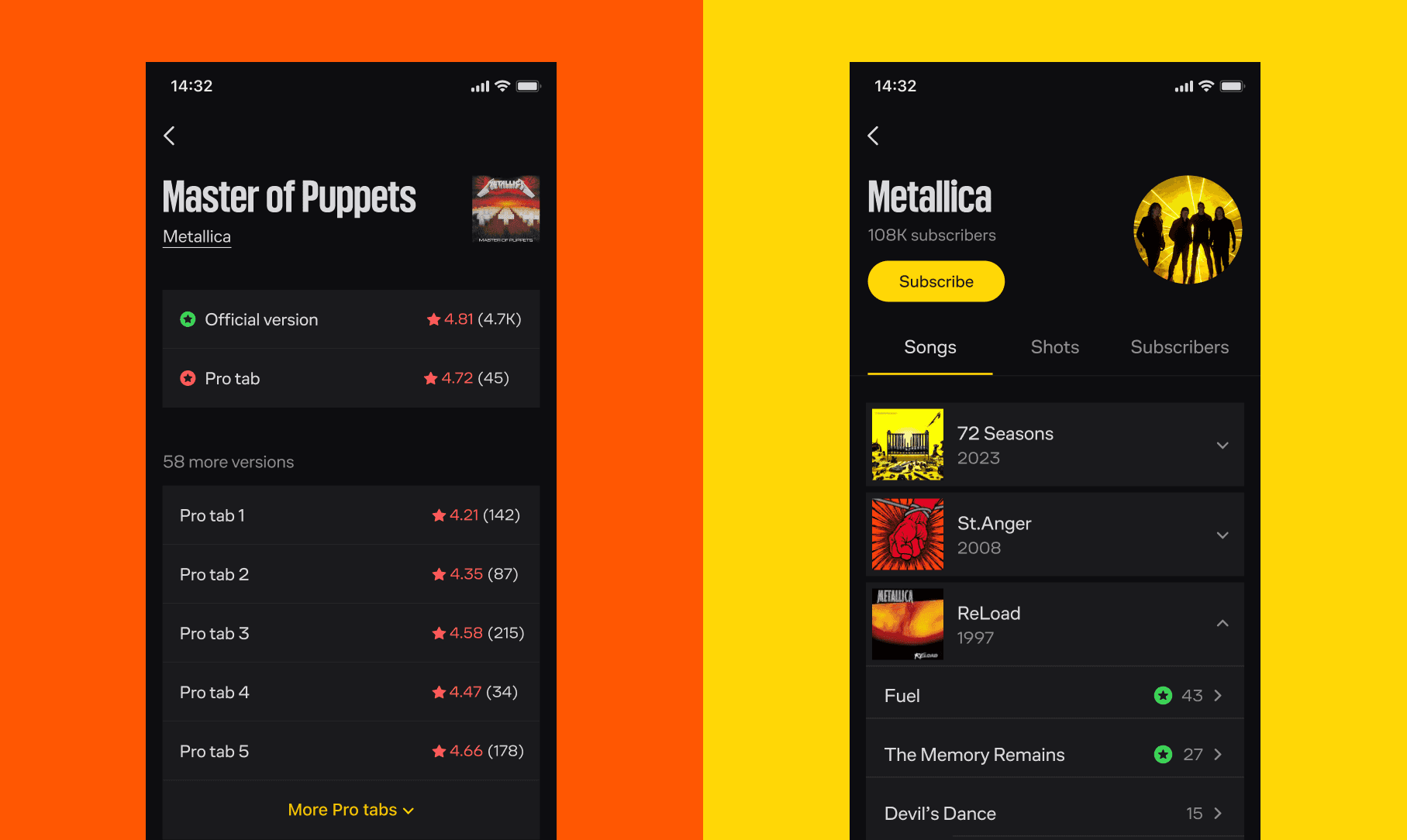 Owned UX and product flows for the Ultimate Guitar mobile app. Was driving end-to-end product design from discovery to delivery: improving onboarding, engagement, usability and product-wide UX consistency.